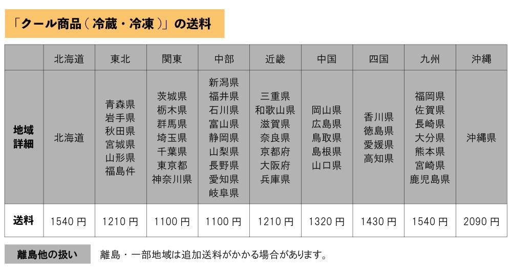 常温商品と冷蔵、冷凍商品をご購入いただいた場合はそれぞれ費用が掛かります。